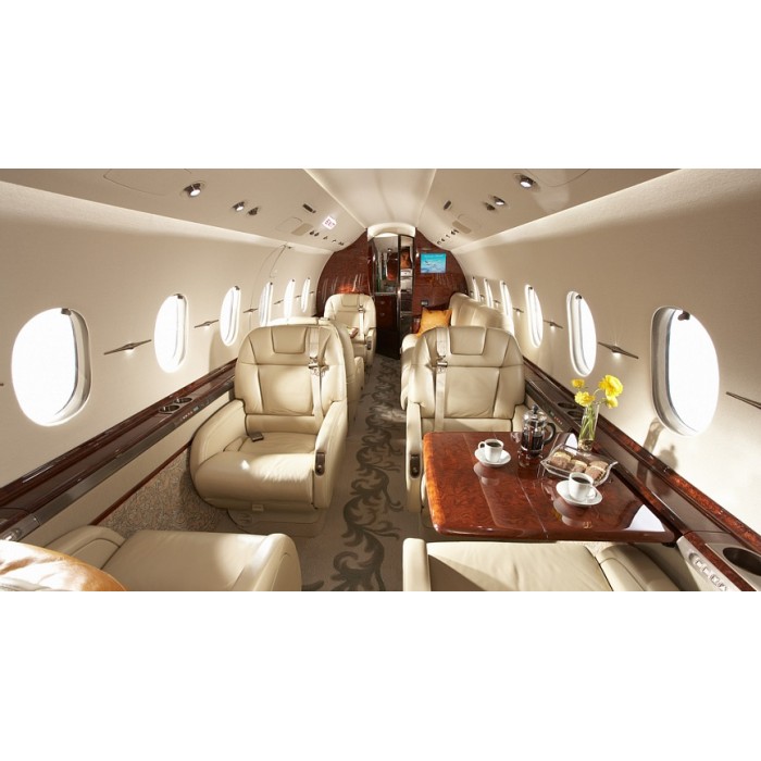 Самолёт представляет собой оптимальное сочетание качества, новейших технологий и изысканного дизайна. В салоне расположены 8 пассажирских мест: 4 пары кресел, каждая из которых трансформируется в полноценное спальное место.