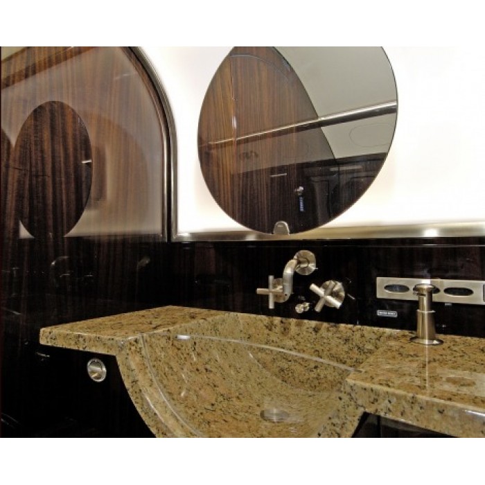 Салон Challenger 350 бывает в двух видах компоновок – на 8 пассажиров (две клубные зоны) и на 9, когда 2 кресла заменяются диваном. Любая пара кресел может быть трансформирована в спальное место с горизонтальной, ровной поверхностью, что позволит полноценно отдохнуть во время полета.