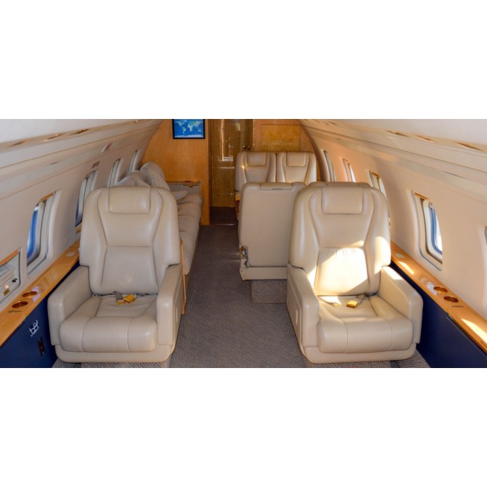 Просторный VIP-салон оборудован мягкими креслами, диваном, столиками, создающими комфортные условия для работы и отдыха. На борту имеются устройства связи, современные аудио- и видео-системы. Кроме того, время полета пассажиры могут беспрепятственно пройти в багажное отделение за необходимыми вещами.