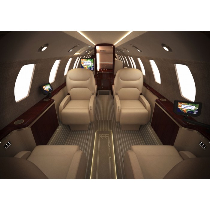 «Citation VII» — среднемагистральный бизнес-джет со светлым и просторным салоном, по которому можно передвигаться в полный рост. Мягкие кожаные сиденья дополнены современным мультимедиа-центром.
