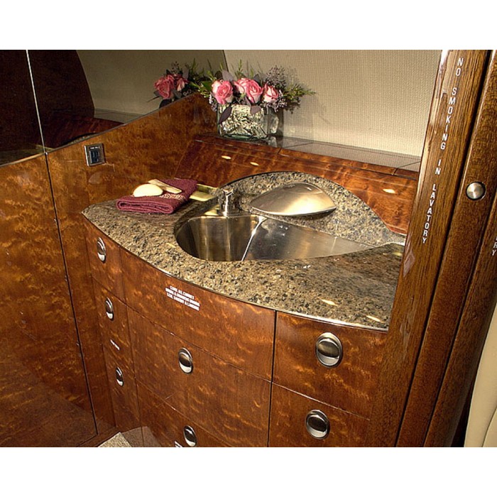 В салоне, — длина которого более семи метров, — созданы все условия для работы, проведения совещаний, переговоров, а также комфортабельного отдыха. Имеется восемь мягких кресел с удобными подголовниками и подлокотниками. Кресла трансформируются в полноценные спальные места.