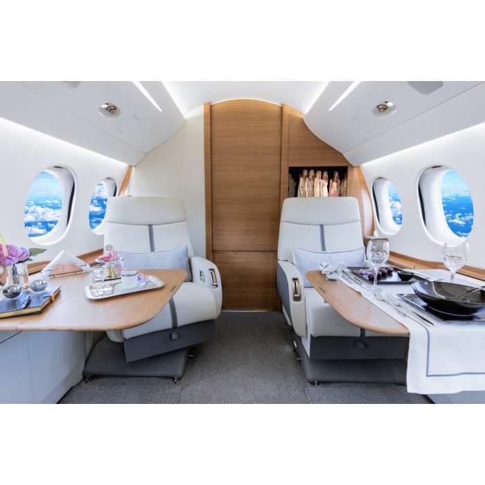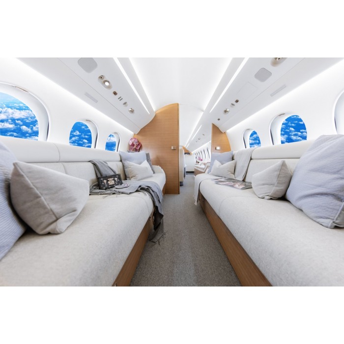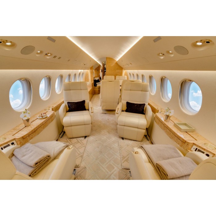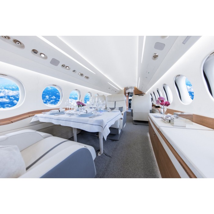 - Dassault Falcon В салоне 7X есть три просторные зоны отдыха, 28 больших окон и акустическая технология, которая ограничивает шум, делая путешествие более комфортным и продуктивным.