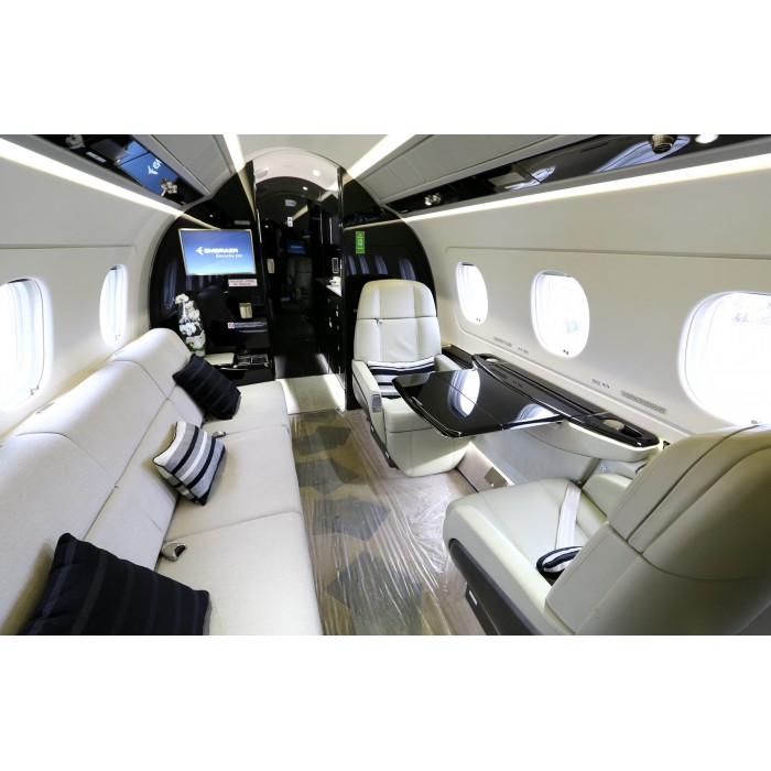 Для максимального комфорта пассажиров Embraer выбрал для пассажирского салона кресла от ведущего мирового поставщика авиационной мебели и оборудования B/E Aerospace. Это стандартные сиденья, которые могут разворачиваться на 360 градусов и включают дополнительные опции - вибромассаж, поддержку поясничного отдела и удобную подставку для отдыха ног. Ширина каждого кресла - 67 сантиметров. Также восемь сидений раскладываются в четыре полноценных спальных места. Еще два спальных места представляют собой раскладывающиеся диваны.