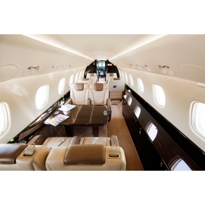 В зависимости от конфигурации самолёт может взять на борт до 16 пассажиров, при этом у каждого будет своё индивидуальное пространство. Салон, по которому можно передвигаться в полный рост, оснащён удобными креслами и диваном, шкафом и большими столами для обеда или заседаний. Каждая пара кресел, расположенных напротив, трансформируется в полноценное спальное место.