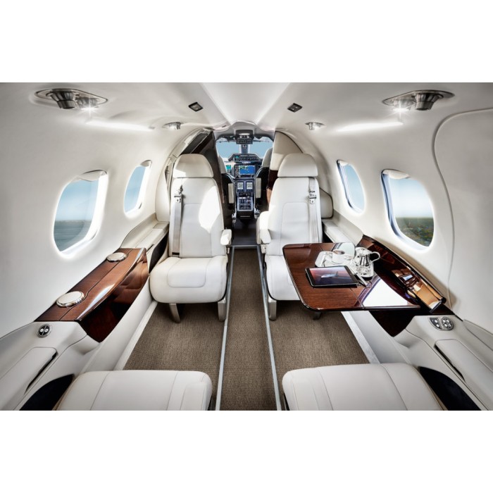 Самолет рассчитан на четырех (или шесть) пассажиров и обеспечивает высокий уровень комфорта. Интерьер выполнен в сотрудничестве с инженерами из BMW Designworks USA.