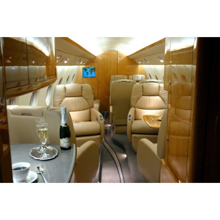 Салон «Gulfstream G200» — один из самых больших в своём классе: в нём могут разместиться до 10 человек. Причём, благодаря высоте салона 1,92 метра это могут быть высокорослые пассажиры, которым будет комфортно перемещаться в полный рост.