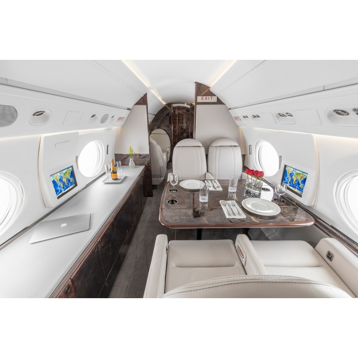 Салоны семейства самолетов Gulfstream известны во всем мире изысканностью, комфортом и практичностью. И эта модель не является исключением, в салоне установлены кресла с откидной спинкой или диваны. Комфортные кресла полностью откидываются, чтобы можно было прилечь во время долгого перелета.