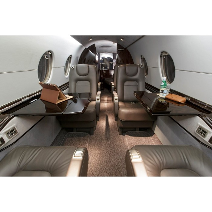 Салон самолёта имеет: ровный пол (благодаря чему легче перемещаться во время перелёта), минибар (для хранения напитков и лёгкой еды), удобные кожаные кресла. Система кондиционирования воздуха дарит приятное ощущение свежести в течение полёта, а комбинация прямого и рассеянного освещения дополнена качественной отделкой салона. Комфортное общение во время полёта обеспечивают шумопоглощающие материалы.