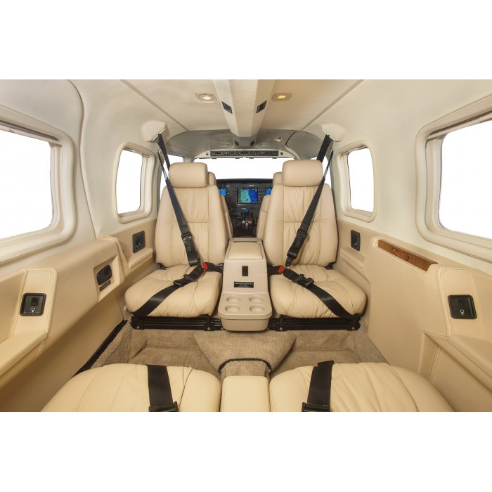 При всей своей практичности и функциональности пассажирский салон предлагает комфорт премиум-класса. Салон хорошо освещен. Благодаря широким окнам-иллюминаторам, расположенным у каждого пассажирского кресла слева и справа по борту, из самолета обеспечивается хороший обзор. Эргономичные кожаные кресла по числу пассажиров расположены в салоне так, чтобы обеспечить им максимум удобства, а также возможность общения в полете. Внутренняя кожаная отделка салона со скоординированным по цвету ковровым покрытием пола выполняется в одном из предлагаемых производителем колеров. Низкий уровень шума в салоне, хорошая вентиляция, система кондиционирования воздуха, холодильник, встроенный в тумбу-подлокотник с подстаканниками - повышающие комфорт мелочи удовлетворят самых изысканных и требовательных пассажиров.
